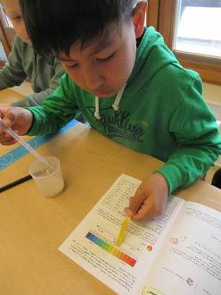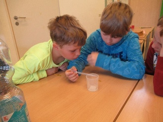 Die Osterferienwoche war vollgepackt mit unterschiedlichen Aktivitäten, die von den Kindern selbst gewünscht und organisiert waren. So gab es einen Experimente-Tag, an dem wir unterschiedliche Flüssigkeiten auf ihren pH-Wert untersuchten, verglichen und die Ergebnisse notierten. Das war eine lehrreiche „Staune-Stunde“ für alle (auch für die Erwachsenen); wir erhielten erste chemische Erkenntnisse.