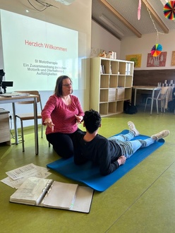 Am 4.4.25 hatte unser Team eine Ganztagsschulung. Früh gab es die Hygiene-Belehrung über HACCP und anschließend sprach Frau Kirk über SI-Mototherapie und zeigte an vielen praktischen Beispielen die Möglichkeiten der Diagnostik und Behandlung. Die praxisnahe und interaktiv angelegte Schulung fand bereits zum 3. Mal statt und jedes Mal gibt es neue Denkanstöße und Beobachtungsreflexionen. Natürlich wurden einige Übungen zur Verbesserung der sensorischen Integration geübt, gleich vor Ort auf der Turnmatte, was natürlich die Veranstaltung belebte. Wir danken Frau Kirk ganz herzlich für die lehrreichen Inhouse-Schulungen und ihre Bereitschaft, ihre mototherapeutischen Tests in unserem Hause mit Kindern und Eltern durchzuführen!