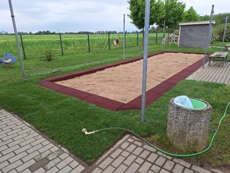 Endlich wird nun auch das Wetter wieder etwas wärmer und lädt zum Spielen im Sand ein. Die Kindergarten- und Hortkinder erfreuen sich bereits am neu gestalteten und frisch aufgefüllten Sandspielbereich. Auch der Sandkasten im Garten der Krippe wurde erneuert, allerdings war nach der Fertigstellung im späten Frühjahr ringsherum nur Erde … der Grassamen braucht einfach zu lange und die Kleinsten sollen nicht durch den Dreck in den Sand krabbeln müssen. Aus diesem Grund ergriff unsere engagierte Leitung die Initiative und organisierte in Absprache mit dem Träger Rollrasen. Eine Mutti startete früh mit Auto und Hänger und holte aus Krostitz 40 qm (800 kg!) frisch geschälten Rollrasen! Bereits am Nachmittag desselben Tages war eine frisch ausgelegte Rasenfläche zu bewundern. Der schönste Lohn für diese Aktion: das Lächeln der Jüngsten, die nun in den Sand krabbeln können. Natürlich ist das Bewässern des neuen Rasens auch an Feiertagen und Wochenenden bereits im Team organisiert. Dank an alle Helfer!