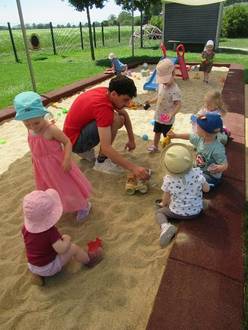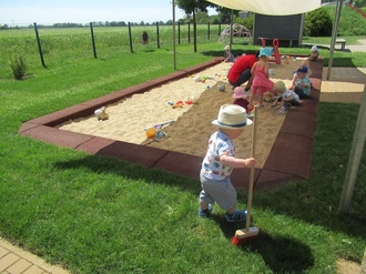 Unsere Jüngsten staunten nicht schlecht und nahmen ihr neu gestaltetes Sandspiel-Paradies umgehend ein: