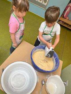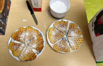 +++ am 5.5.25 fand unser Zuckertütenbasteln statt, ein gemütlicher Abend der Eltern und der ABC-Gruppenerzieherinnen in Vorfreude auf das bevorstehende Zuckertütenfest +++ alle Kinder von klein bis groß überlegen sich einen Beitrag zum Jubiläums-Programm am 6.6.25 +++ bei dem schönen Wetter ist unser Alltags-Mittelpunkt längst wieder nach draußen verlegt +++ das Kooperationsprojekt Schule-Hort tagt im Tandem am 7.5. und bereitet den nächsten pädagogischen Tag mit allen Lehrern und Horterzieher/innen vor, der am 19. Mai stattfinden wird +++ am 28.5. findet das traditionelle Sportfest unserer Grundschule statt, an dem wieder unsere ABC-Gruppe teilnehmen wird +++ alle Kinder und Erzieher/innen fiebern der Festwoche 2.-6- Juni entgegen, wo es an jedem Tag ein Highlight geben wird! +++ wir backen immer dienstags frischen Kuchen oder Waffeln für alle Kinder: