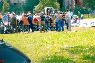 * Füllen von Sandsäcken im Kraftwerk Vockerode