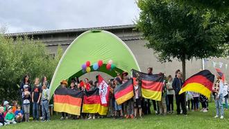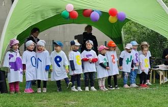 Am Nachmittag erwarteten wir aufgeregt unsere Eltern, Familien und Geschwister. Gegen 15 Uhr begann ein kleines Programm für die zahlreich erschienenen Gäste. Von den Kleinsten in der Krippe hörte man das Lied „Lieber Sommer, komm zu uns!“, jede Gruppe war an der Reihe mit einem kleinen Beitrag und positionierte sich in unserem „Festpavillon“, während ungefähr 200 Gäste ringsherum lauschten und applaudierten! Am Ende boten die Hortkinder einen attraktiven Programmpunkt mit spinning Pois, Akrobatik, Tanz und einem musikalischen Vorgeschmack auf die bevorstehende Fußball – EM dar.