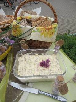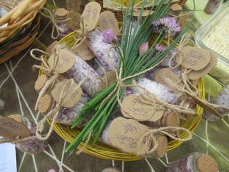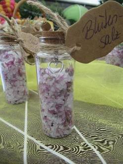 Direkt am Eingang präsentierten wir unsere Ackerspezialitäten: frisch hergestellte Kräuterbutter mit Knusperbrot zum Verkosten und hübsche kleine Gläser mit Kräutersalz aus getrockneten Schnittlauchblüten zum Mitnehmen. Eine Raffinesse!