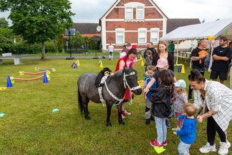 Außerdem danken wir der Feuerwehr Oranienbaum, die eine Attraktion bei dem Fest war. Auch der Besuch einer wunderschönen Clownsfrau mit ihrem Pony war ein Hingucker.