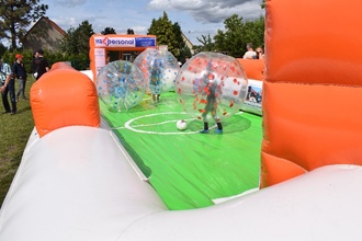 Und da ab Mittag auch die Sonne neugierig wurde, konnte unser Menschenkicker doch noch aufgebaut werden. Wir bedanken uns für das Sponsoring des Menschenkickers ganz herzlich bei dem Förderverein der FFW Mühlanger e. V.! Eine besondere Attraktion mit Spaßfaktor