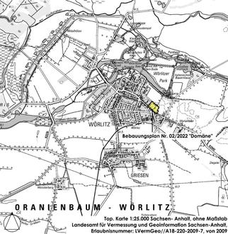Am 13.09.2022 ist von der Kulturstiftung Dessau-Wörlitz der Antrag auf Einleitung eines Bebauungsplanverfahrens im Bereich der ehemaligen fürstlichen Domäne in der Stadt Oranienbaum-Wörlitz, Ortsteil Stadt Wörlitz eingegangen.
