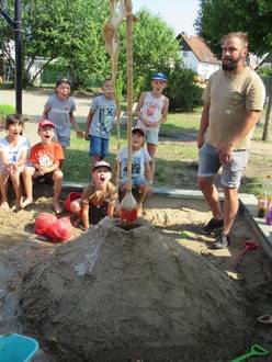 +++ treue Sponsoren besuchten uns, wir sangen für sie Lieder zum Dank +++ die ABC-Gruppe erfreute die Rentner in der AWO mit einem kleinen Programm +++ bei dem schönen Sommerwetter ist Hochbetrieb in unserer Matschstrecke +++ das alljährliche Highlight zum ersten August: die Einschulung!
