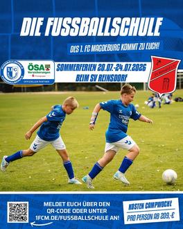 Reinsdorf – Zum Start ins neue Jahr gibt es bereits ein sportliches Highlight für die Sommerferien: Die offizielle Fußballschule des 1. FC Magdeburg gastiert vom 20. bis 24.07.2026 auf dem Sportplatz des SV Reinsdorf. Das fünftägige Feriencamp richtet sich an Mädchen und Jungen im Alter von 6 bis 14 Jahren – unabhängig davon, ob sie bereits im Verein spielen oder einfach Spaß am Fußball haben.