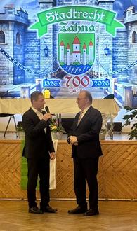 Mit einem würdigen und zugleich unterhaltsamen Festakt haben am 21. Februar in Zahna die Feierlichkeiten zum 700-jährigen Jubiläum der Stadtrechtsverleihung begonnen. Gefeiert wurde im Zahnaer Rathaussaal bis in den 22. Februar hinein – denn an diesem Tag im Jahr 1326 verliehen die Brüder Erhard und Heinrich von Wederden das Stadtrecht an Zahna.