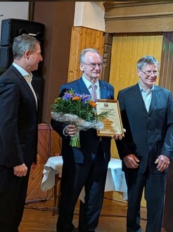 Besonders herzlich und unterhaltsam waren die Grußworte der Partnerstädte. Sowohl Tobias Faust, Bürgermeister von Edemissen, als auch Klaus Gasteiger, Bürgermeister von Kaltenbach in Österreich, berichteten von den zahlreichen gemeinsamen Aktivitäten mit Zahna und ließen dabei die eine oder andere amüsante Anekdote einfließen. Beide Bürgermeister der Partnerstädte trugen sich in das Goldene Buch der Stadt ein. Diese Ehre wurde neben dem Ministerpräsidenten a.D. auch Harry Wolf für seine jahrzehntelangen Verdienste um die Zahnaer Feuerwehr zuteil.