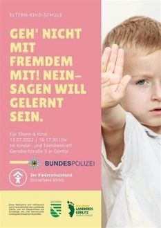 Am Dienstag, 16.05.2023, führen wir um 10:00 Uhr mit der Polizei Wittenberg eine Veranstaltung „Geh nicht mit Fremden mit“ durch.