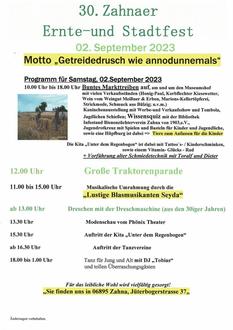 Alljährlich wird zum Ernte- und Stadtfest Zahna auf, am und um das Bauernmuseum von den Mitgliedern dargestellt, wie einst unter schwierigsten Bedingungen dem Boden lebensnotwendige Nahrung abgerundet wurde.