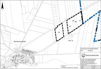 Der Vorhabenträger plant die Errichtung einer Freiflächenphotovoltaikanlage auf landwirtschaftlichen Flächen in der Gemarkung Deetz. Zu diesem Zweck soll der vorhabenbezogene Bebauungsplan Nr. 04/2024 Deetz – Nedlitz der Stadt Zerbst/Anhalt gem. § 1 Abs. 3 und § 2 Abs. 1 i. V. m. 12 BauGB aufgestellt werden. Der Vorhabenträger beantragte die Aufstellung Deetz – Nedlitz.
