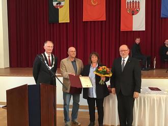 Glückwünsche zum Ehrenamtspreis der Stadt Zerbst/Anhalt erhielt Simone Striebing vom Stadtratsvorsitzenden Wilfried Bustro, Laudator Günter Benke und Bürgermeister Andreas Dittmann (v.r.). Foto: Toni Voigt