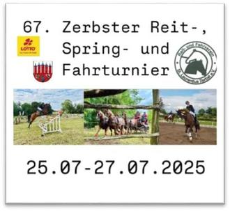 Am Samstag und Sonntag finden in der Magdeburger Straße auf dem Hof der Familie Ganzer die Dressurprüfungen der Klasse A* bis Klasse S* statt. Parallel dazu finden vor der spektakulären Kulisse des Zerbster Heimat- und Schützenfest auf der Wiese im Schlossgarten die Springprüfungen statt. Hier kann man hautnah Springsport bis zur Klasse S* (Höhe: 140 cm) auf der Tribüne des Zerbster Schlosses bestaunen.