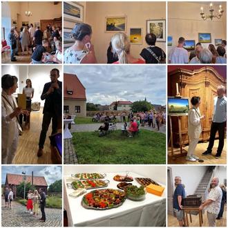 Eine Vernissage – die feierliche Eröffnung der Kunstausstellung eines zeitgenössischen, also lebenden Künstlers – im Schloss? Gab es so etwas früher schon einmal? Ich selber konnte mich nicht daran erinnern (weil ich fast die Hälfte meines Lebens auch gar nicht in Zörbig wohnte) und so fragte ich bei der „alten Schlossherrin“ Brigitta (Weber) nach: „Ja, Vernissagen haben wir meist gemacht, die erste in den 1970er Jahren zur Ausstellung von Walter Dötsch [1909-1987, deutscher Maler in der DDR, der zu den Vertretern des „Bitterfelder Weges“ sowie zu den Wegbereitern des sozialistischen Realismus gehörte, Anm.d.Red.]... Wir hatten Vernissagen mit dem Maler Kaufhold/Halle, einem Maler aus Landsberg und einem aus Sandersdorf (Namen sind bei mir jetzt weg) und natürlich jeweils mit dem Malverein „Neue Schenke“ Wolfen e.V., der neulich sein 75-jähriges Bestehen beging... Seit den 1990er Jahren fast bei allen Gastausstellungen, auch mit Sekt und teilweise "Häppchen". Wir haben dazu selbst gestaltete Einladungen verschickt. Beispiele müssten oder könnten noch in den Unterlagen des Museums vorhanden sein. Finanziert das Ganze meist über Spenden und wir passten auf, wenn der Sekt mal preiswert war.“