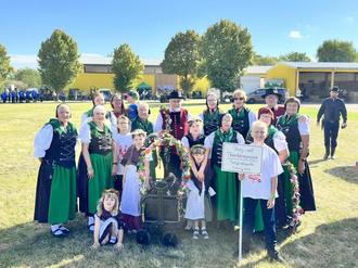 Auch unser kleiner Verein nahm an dem großen Festumzug teil und konnte sich mit unserer Vereinsfahne, dem Erntekranz mit den bunten Bändern, welche von unseren Frauen gehalten wurden, präsentieren. Die zahlreichen Zuschauer honorierten unser schönes Bild mit viel Beifall.