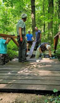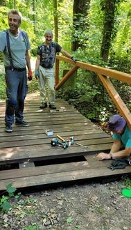 Darüber hinaus schufen die Vereinsmitglieder in zahlreichen Einsätzen zusätzliche Sitzmöglichkeiten mit dem bei Verschnittarbeiten gewonnenen Holz sowie Geländer für Brücken.