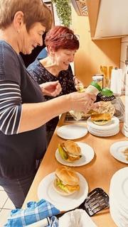 Nachdem die Kaffeetafel zügig geleert war, begann wie gehabt die Phase der intensiven Gespräche. Diese wurde zu einem etwas späterem Zeitpunkt nur noch unterbrochen durch die Ankündigung, dass ein kleiner Imbiss, in Form eines frischen und heissem Backfisch im Brötchen, gereicht wurde.