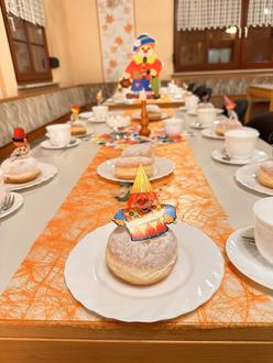 Dem Motto für unser Treffen „Faschingsfeier der Senioren“ waren viele der Aufforderung gefolgt und hatten sich dieses mal dem Thema entsprechend gekleidet. In dem vorab liebevoll dekorierten Raum, welcher mit Girlanden, Luftballons und schön geschmückten Tischdekorationen hergerichtet war, fühlten sich alle sofort wohl und eine tolle Feierstimmung war sofort spürbar. Natürlich wartet auf der Kaffeetafel für jeden schon der obligatorische frische Pfannkuchen. Herr Klaus Pahl, als „Kapitän“ übernahm das Kommando und ehrte zu Beginn, wie gewohnt, die Geburtstagskinder des Monats mit einem Fläschchen Sekt.