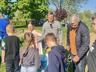 Dazu hatte man sich den professionellen Neugier-Express aus Oberschöna eingeladen, welcher mit viel Technikspass für Klein und Groß begeisterte. An 10 verschiedenen Stationen wurden kindgemäße Exponate aufgebaut, wobei es hier um funktionierende kleine Experimente aus allen Bereichen der Chemie, Physik und Mathematik ging. Spielerisch wurde das Begreifen der Naturwissenschaften mit Kopf und Hand mit viel Spaß für die Kinder dargeboten. Die Aufgabe unserer Seniorenmitglieder war die Betreuung von 4 Stationen. Nach einer kurzen Einweisung erfolgte, im 15 minütlichen Wechsel der einzelnen Schülergruppen, die Vorstellung der Exponate durch unsere Senioren. Bei herrlichem Wetter wurde bis zur Mittagszeit fleißig von über 100 Schülern das Dargebotene intensiv genutzt und alle hatten jede Menge Spaß dabei.