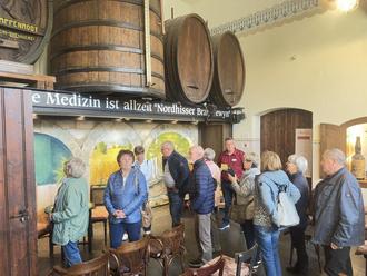 Am Dienstag, den 6. Mai ging es zeitig früh in Salzfurt los und die Wadendorfer sowie auch Gäste aus Löberitz konnten in ihren Orten direkt zusteigen. Die erste Station führte uns nach Nordhausen in die älteste Brennerei und Kornstadt der Welt mit weit über 500 Jahren Brenntradition. Die frühere Brennerei Seidel, 1908 erbaut, ist seit jeher Heimat des Echten Nordhäuser Doppelkorns. Bei einer kurzweiligen und amüsanten Führung besuchten wir die Brennräume unter dem 30 Meter hohen Schornstein und erhielten Einblick in die Kornherstellung. Natürlich durfte auch eine ausgiebige Verkostung der verschiedenen Schnäpse nicht fehlen und jeder konnte sich im Haus eigenen Hofladen mit seinen Lieblingssorten noch eindecken.