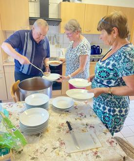 Lesen konnten dies naturgemäß alle Senioren, denn gelernt ist gelernt. So hatte sich unser Seniorchefkoch Martin und seine Frau Petra wieder selbst übertroffen und einen riesigen Topf mit leckerer Soljanka für die ganze Runde zubereitet. Natürlich gab es reichlich Nachschlag. So gestärkt wurde auch das eine oder andere Bierchen geleert, begleitet von einem Trinkspruch.