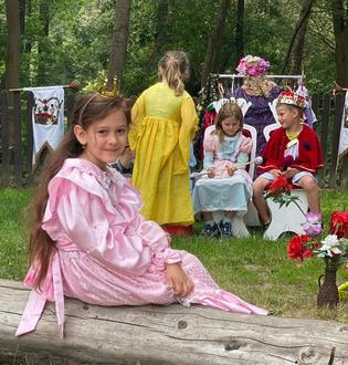Dieses Mal hatte sie das Märchen Dornröschen im Gepäck. Schnell wurden die Rollen unter Kindern, Eltern und Erzieherinnen verteilt und jeder schlüpfte in ein Kostüm. Es war für jeden etwas dabei: König, Königin, die 13 Feen, Gärtner, Köche, Hecken und natürlich Dornröschen und Prinzen. Alle führten ihre Rollen wunderbar auf und erzählten so dem Publikum das Märchen.