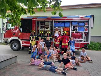 Die Mädchen und Jungen der Klasse 1 aus der Grundschule Löberitz staunten nicht schlecht, als am 25.Juni ein Feuerwehrauto, genauer gesagt ein modernes HLF20 (ein Hilfeleistungs-Löschgruppen-Fahrzeug) mit einem 2000 Liter fassenden Wassertank, auf den Schulhof fuhr. Und der Anlass dafür? Im Sachunterricht galt es, die Aufgaben sowie die Ausrüstung der Feuerwehr und ihrer Leute kennen zu lernen. Und das sollte auf besonders spannende und eindrucksvolle Art geschehen.