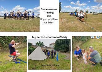 Am 16.07.2023 fand auf dem Sportplatz in Großzöberitz ein gemeinsames Training mit den Sportfreunden des SV Erfurt-West 90 e. V. Abt. Bogensport statt. Die Sportfreunde waren zu einem Trainingslager in Sandersdorf. Wir nutzten diese Gelegenheit zu einem gemeinsam Training. So lernten wir andere Methoden, wie man sich vorbereitet, den aktiven Teil des Trainings gestaltet und danach entspannt, kennen. Für alle Sportler ein tolles Erlebnis und alle waren der Meinung, es wird im nächsten Jahr wiederholt und erweitert.