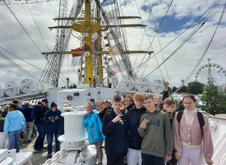 Ein besonderes Erlebnis war auch die Besichtigung des Großseglers der indonesischen Marine „BIMA SUCI“, die als größtes Schiff in diesem Jahr zur Hanse Sail kam. Auch ein Interview konnte eine Schülerin von uns an Bord gebe