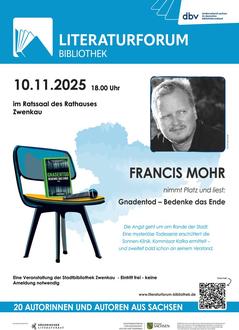 Auch für erwachsene Freunde spannender Literatur gibt es eine Veranstaltungsempfehlung: Am 10. November um 18 Uhr liest der Dresdner Autor Francis Mohr im Ratssaal aus seinem Krimi „Gnadentod – Bedenke das Ende“. Der Eintritt ist frei.