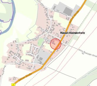 Quelle: GeoSN, dl-de/by-2-0; Stadt Zwenkau Quelle Kartengrundlage: cardo.geoportal-lkl.de Lageplan Geltungsbereich B-Plan 50 „Rüssen-Kleinstorkwitz, Erweiterung Gartenstraße“