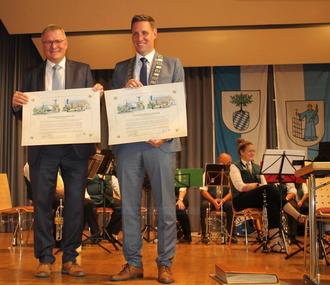 Der feierliche Akt der Unterzeichnung einer nun verbindlichen Städtepartnerschaft fand in der Festhalle in Nußloch im Beisein von derzeitigen und ehemaligen Vertretern der Verwaltung sowie des Gemeinderates, von Vertretern der Kirche, Vereinen und Verbänden statt. Der Musikverein Feuerwehrkapelle 1875 Nußloch e.V. umrahmte würdevoll die Feier.