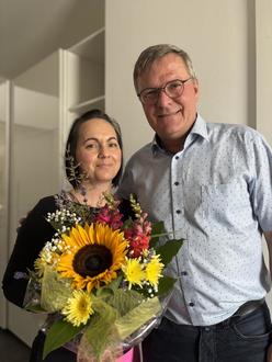 Bürgermeister Holger Schulz bedankte sich bei Diana Anders für die Unterstützung bei der Betreuung von Zwenkauer Kindern mit ihrer Kindertagespflege „Pusteblume“.