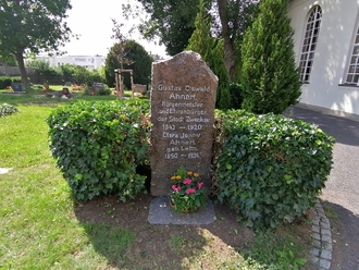 Anlässlich des 180. Geburtstags des ehemaligen Bürgermeisters Gustav Oswald Ahnert am 08.08.2023 wurde das Ehrengrab auf dem Ev.-Luth. Friedhof in Zwenkau vollständig instand gesetzt. Der Efeu wurde durch die Mitarbeiter des Bauhofes der Stadt Zwenkau in Form geschnitten. Die Reinigung des Gedenksteins sowie die Neuhinterlegung des Schriftzuges und das Verlegen der neuen Platte zum Abstellen von Blumenschalen wurde durch die Firma Naturstein Lützen GbR ausgeführt. Die Ehrengrabstelle ist jetzt gut als solche erkennbar und dem Wirken Ahnerts als Bürgermeister der Stadt Zwenkau gebührend.