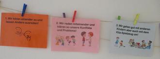 Regeln, Wünsche und Rituale sind ein fester Bestandteil unserer pädagogischen Arbeit. Sie geben den Kindern Sicherheit und Orientierung und stärken ihr Selbstbewusstsein. So lernen die Kinder Schritt für Schritt, Verantwortung für sich und die Gemeinschaft zu übernehmen.