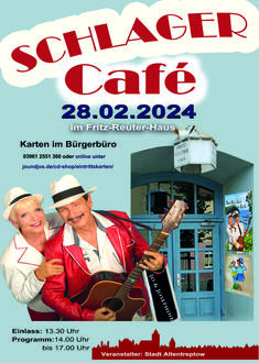 Aufgrund der großen Nachfrage für das Schlager-Café im Januar wird es am 28. Februar von 14.00 – 17.00 Uhr eine weitere Veranstaltung dieser Art geben. Denjenigen, die keine Karten mehr bekommen haben, wird daher die Gelegenheit geboten, ebenfalls das Event im Fritz-Reuter-Haus in Altentreptow zu erleben. Der Charakter des Schlager-Cafés wird sich allerdings ein wenig verändern.