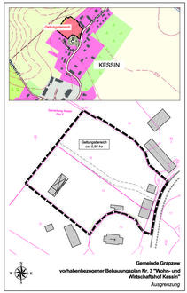 Mit Schreiben der höheren Verwaltungsbehörde des Landkreises Mecklenburgischen Seenplatte vom 24.08.2023, Aktenzeichen 1658/2023-502, wurde für den vorhabenbezogenen Bebauungsplan Nr. 3 „Wohn- und Wirtschaftshof Kessin“ der Gemeinde Grapzow die Genehmigung gemäß § 10 Abs. 2 BauGB mit einer Maßgabe und Auflage erteilt.