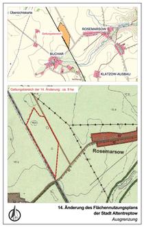 Die Stadtvertretung der Stadt Altentreptow hat in ihrer Sitzung am 15.10.2025 den Feststellungsbeschluss über die 14. Änderung des Flächennutzungsplans Stadt Altentreptow in der Fassung vom August 2025 gefasst. Die Begründung der 14. Änderung des Flächennutzungsplans wurde gebilligt.
