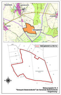 Die Gemeindevertretung der Gemeinde Siedenbollentin hat mit Beschluss vom 13.03.2023 den Entwurf des Bebauungsplanes Nr. 4 „Solarpark Siedenbollentin“ in der Fassung vom Februar 2023 einschließlich der Begründung mit dem Umweltbericht gebilligt und zur öffentlichen Auslegung bestimmt.