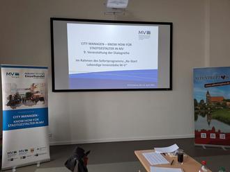 Diese Dialogreihe findet sechsmal im Jahr statt, und wir durften dieses Mal Gastgeber sein und über unsere kleine Stadt Altentreptow berichten. Zu Beginn hielt Bürgermeisterin Claudia Ellgoth eine kleine Rede und gab Einblicke in unsere Stadtentwicklung, danach informierte ich über das Projekt Citymanagement und gab in einer Präsentation einen kurzen Überblick, was wir bisher in 17 Monaten an neuen Formaten umsetzen und voran treiben konnten. Der Schwerpunkt lag hierbei auf den Bereich „Immobilienmanagement“. Die Innenstadtakteure interessierten sich für die Umsetzung und Förderung der neuen Förderrichtlinie und an neuen Nutzungsideen zur Leerstandsüberwindung.