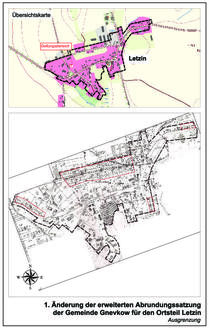 Betr.: | 1. Änderung der Erweiterten Abrundungssatzung für den Ortsteil Letzin der Gemeinde Gnevkow im Verfahren gemäß § 34 Abs. 4 BauGB |