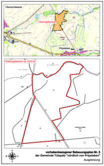Die Gemeindevertretung der Gemeinde Tützpatz hat mit Beschluss vom 05.11.2020 den Planentwurf des Bebauungsplans Nr. 5 „nördlich von Pripsleben" in der Fassung vom Oktober 2020 beschlossen und zur öffentlichen Auslegung bestimmt. Im Ergebnis der durchgeführten Beteiligungen gemäß § 3 Abs. 2 BauGB sowie § 4 Abs. 2 BauGB waren Änderungen zum geplanten Geltungsbereich und zur Konkretisierung der Planung als vorhabenbezogener Bebauungsplan nötig.