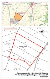Die Gemeindevertretung der Gemeinde Tützpatz hat mit Beschluss vom 30.01.2025 den Entwurf des Bebauungsplanes Nr. 8 „Photovoltaikanlage Sandtagebau Schossow 2“ in der Fassung vom Januar 2025 einschließlich der Begründung mit dem Umweltbericht und Anhängen gebilligt und zur Veröffentlichung im Internet bestimmt.
