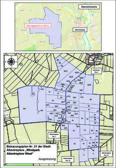 Die Stadtvertretersitzung der Stadt Altentreptow hat in der Sitzung am 08.08.2023 beschlossen, für das in § 2 bezeichnete Gebiet den Bebauungsplan Nr. 31 der Stadt Altentreptow „Windpark Altentreptow West" aufzustellen. Zur Sicherung der beschlossenen