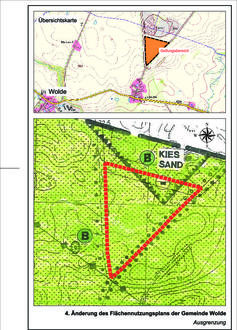 Während des Veröffentlichungszeitraumes können von jedermann Stellungnahmen zum Vorentwurf der Flächennutzungsplanänderung der Gemeinde Wolde vorgebracht werden. Es wird darauf hingewiesen, dass nicht innerhalb der Veröffentlichungsfrist abgegebene Stellungnahmen bei der Beschlussfassung über die 4. Änderung des Flächennutzungsplans unberücksichtigt bleiben können.