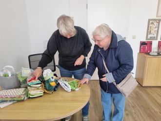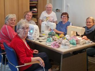 Die Nähgruppe der Caritas nähte 80 Mützen aus weichem Stoff mit wunderschönen Motiven für den Neugeborenen Empfang der Stadt Anklam.