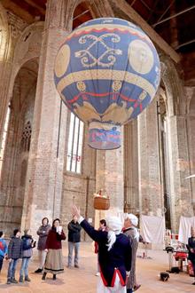 Der Montgolfierday war in diesem Jahr auch Thema des Wahlpflichtunterricht Fliegen am Anklamer Gymnasium. Schüler des Kurses ließen ihre im Kurs selbstgebauten Modellballone aus Papier in der Kirche steigen. Anschließend konnten sie Modellballönern über die Schulter schauen und auch selbst einmal einen RC-Heißluftballon steuern.